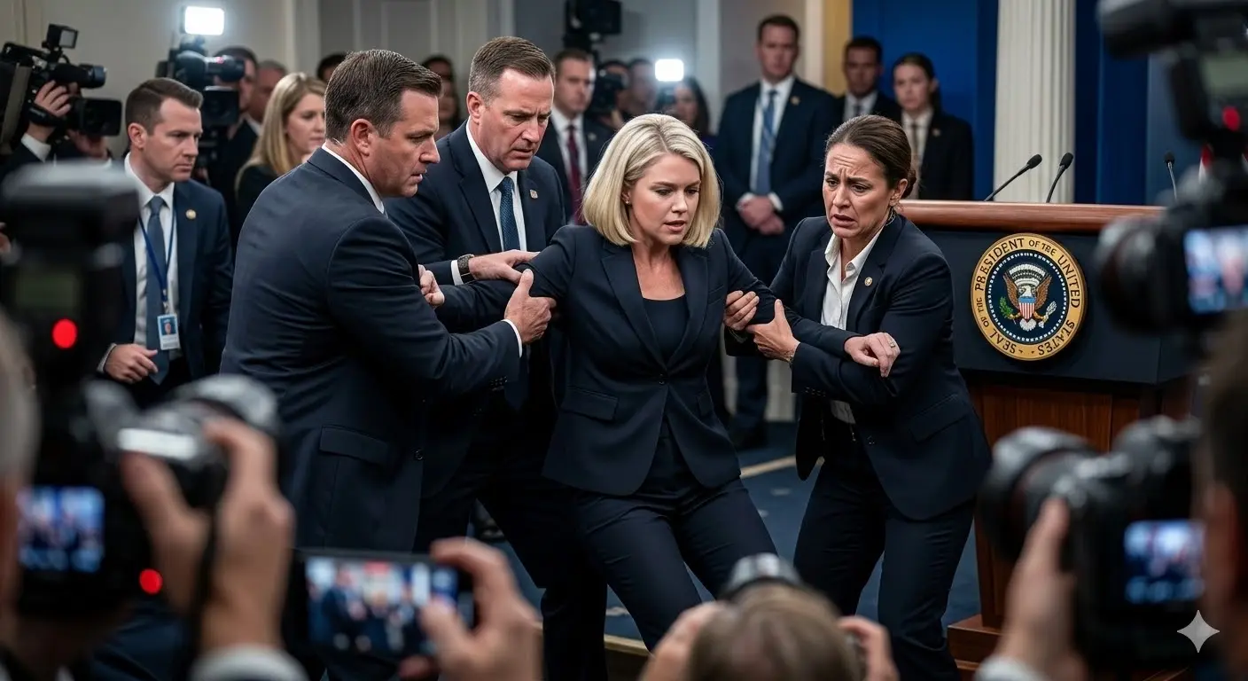 Chaos erupted instantly. Secret Service agents surged forward, forming a protective cordon as medical personnel from the White House Medical Unit rushed in with defibrillators and emergency kits. Shouts of “Get the doctor!” and “Clear the room!” filled the air. Members of Congress in attendance—some from both parties—stood frozen, hands covering mouths in disbelief. Outside, where overflow crowds had gathered on Pennsylvania Avenue to watch screens displaying the briefing, a collective gasp rippled through the throng. Phones were held high, capturing the surreal scene as the normally composed press secretary lay motionless.